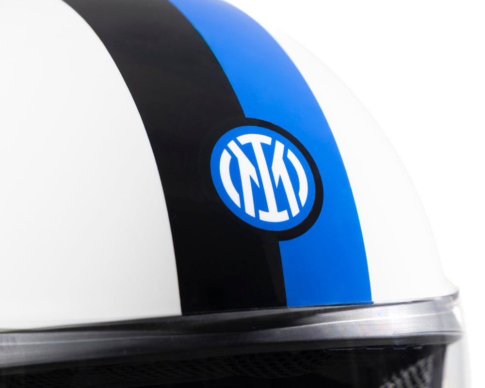Casco moto demi-jet in policarbonato, a doppia calotta, omologato ECE 22.06, con grafica personalizzata Inter.