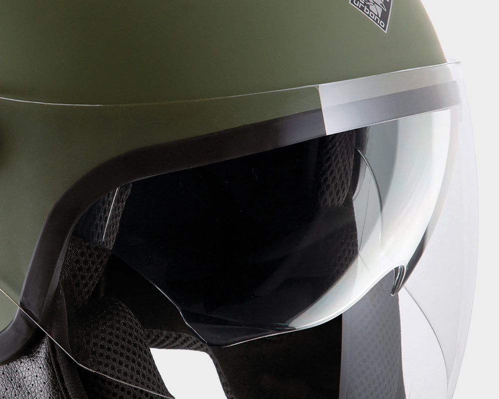 ECE 22.06 homologierter demi-Jet Helm aus Polycarbonat, mit Doppelschale. Es zeichnet sich durch das Small Fit Design, Komfort und die Klassik des Stils.