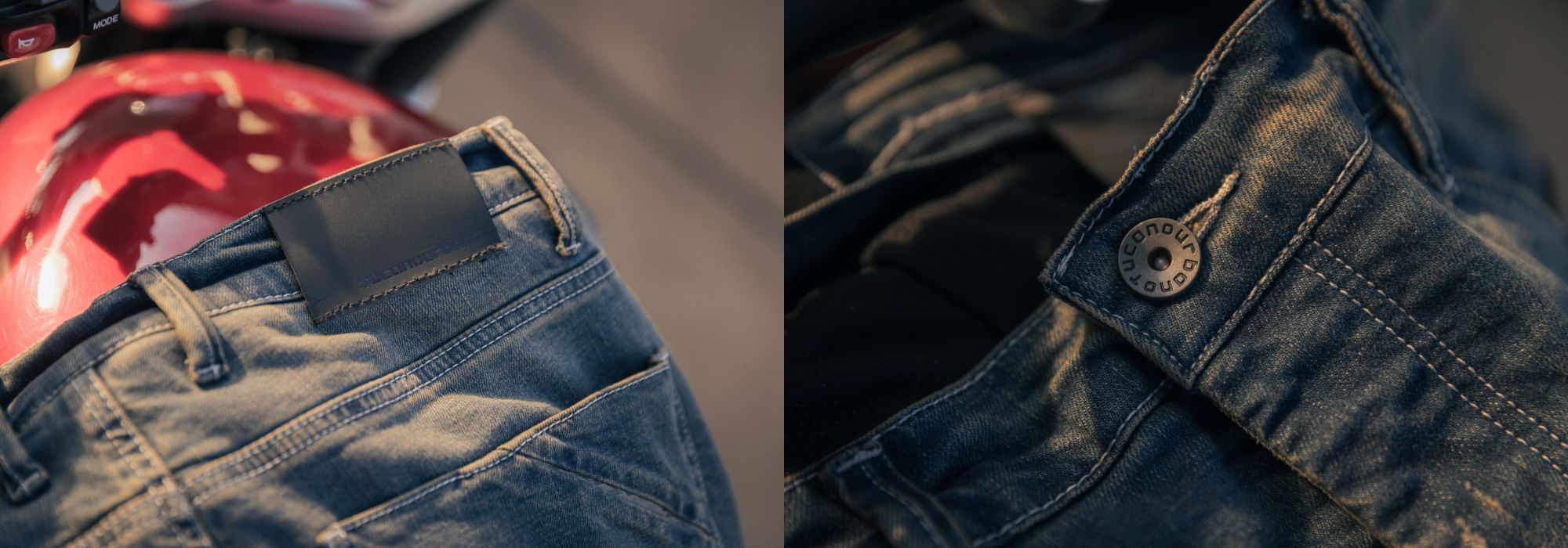 Städtische Jeans, CE-zertifiziert - Klasse A, aus hochfestem elastischem Baumwollgemisch, widerstandsfähig gegen Abrieb. Die abnehmbaren EASYFLEX CE Schutzpolster an den Knien sind so leicht und belüftet, dass man sie weder spürt noch sieht. Ein perfektes Gleichgewicht zwischen Sicherheit und Stil.