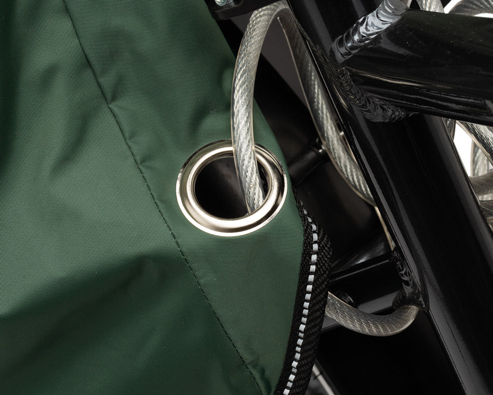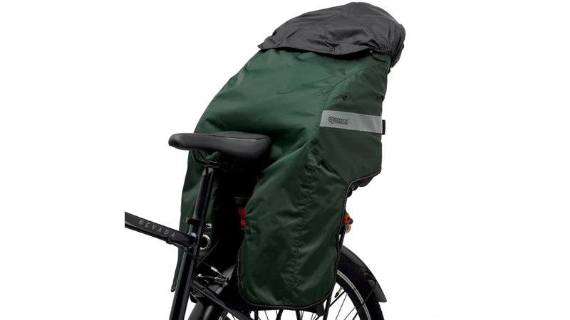 Das integrierte Cape in der Fronttasche kann auch als Sattel-Schutz verwendet werden."