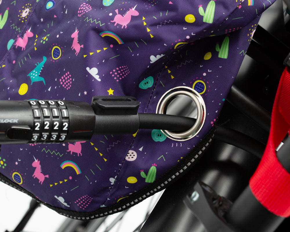Das integrierte Cape in der Fronttasche kann auch als Sattel-Schutz verwendet werden."