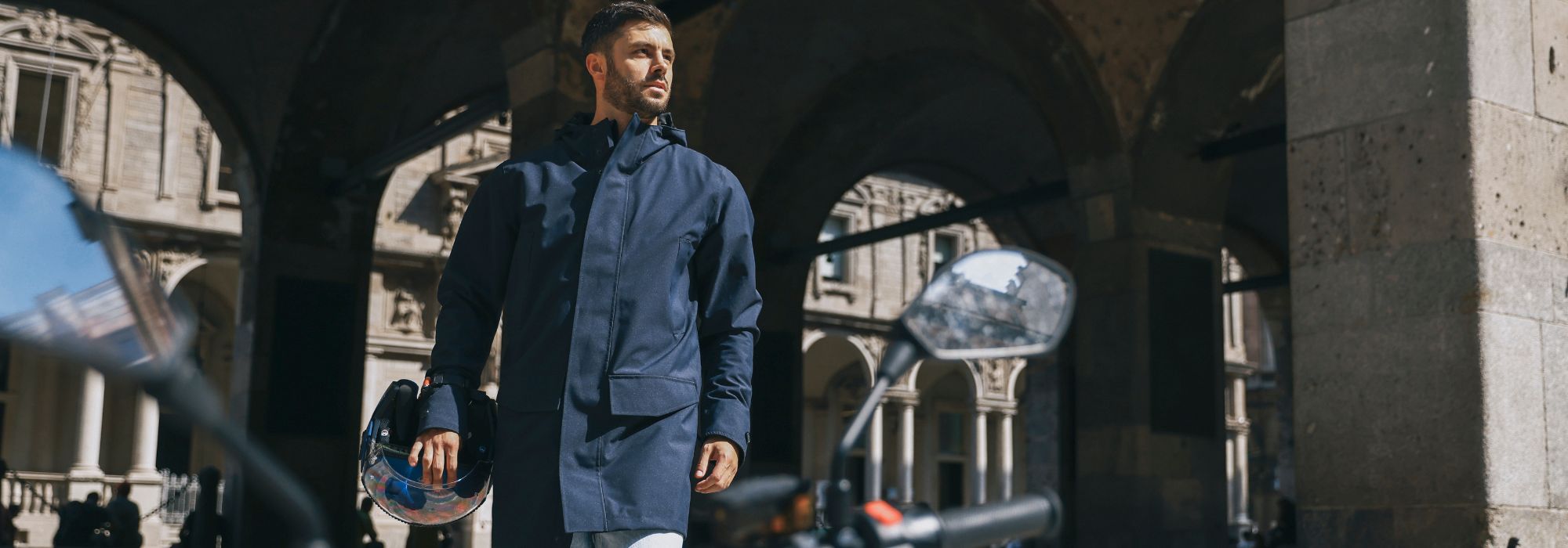 ¾-cut 12-month parka, 100% waterproof and breathable, CE-certified - Class A, made with polyester derived from recycling about 30 plastic bottles. On the shoulders and elbows, it comes with the new RE ZRO® protections, breathable, light, flexible and - here’s the real revolution - recyclable and biodegradable.