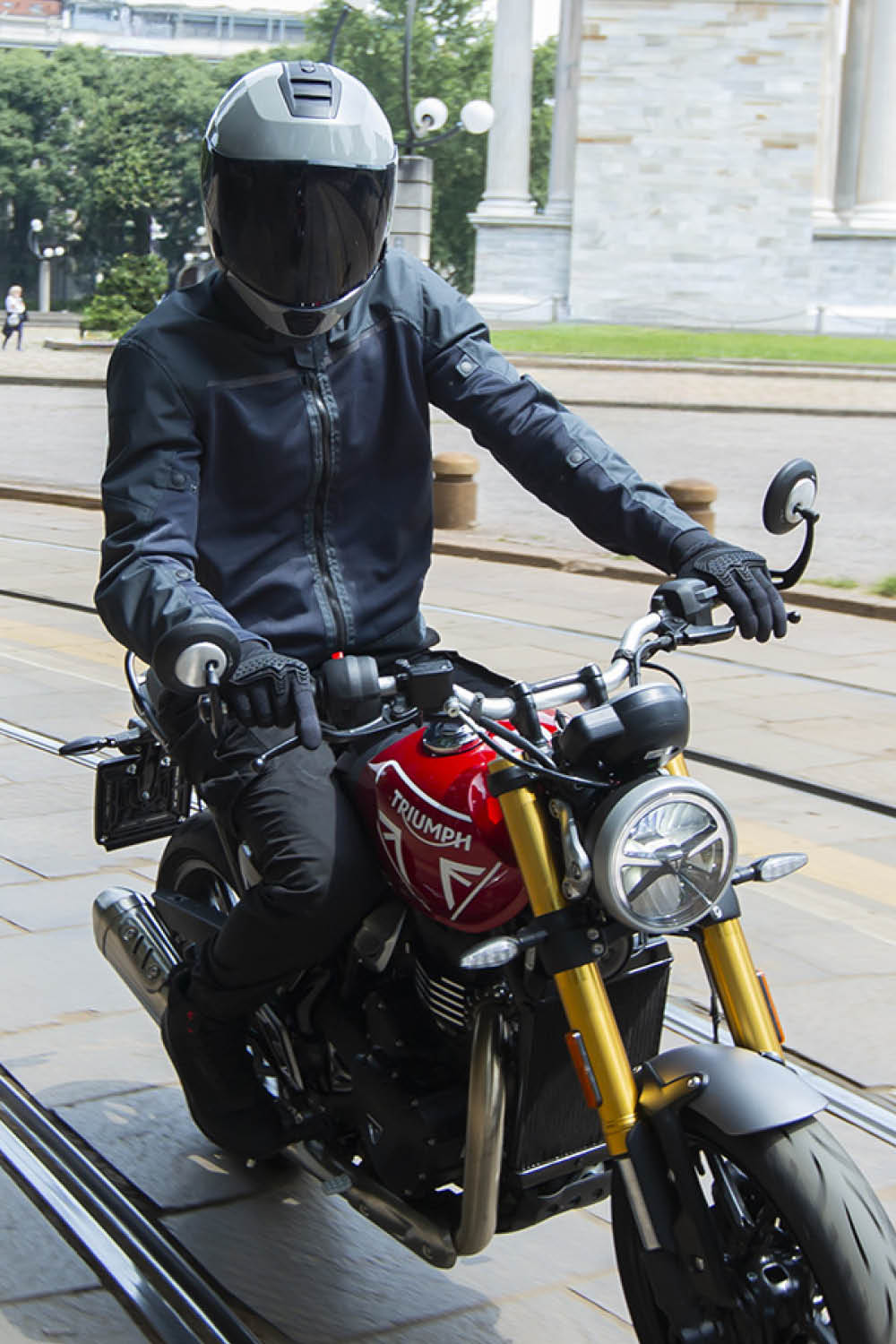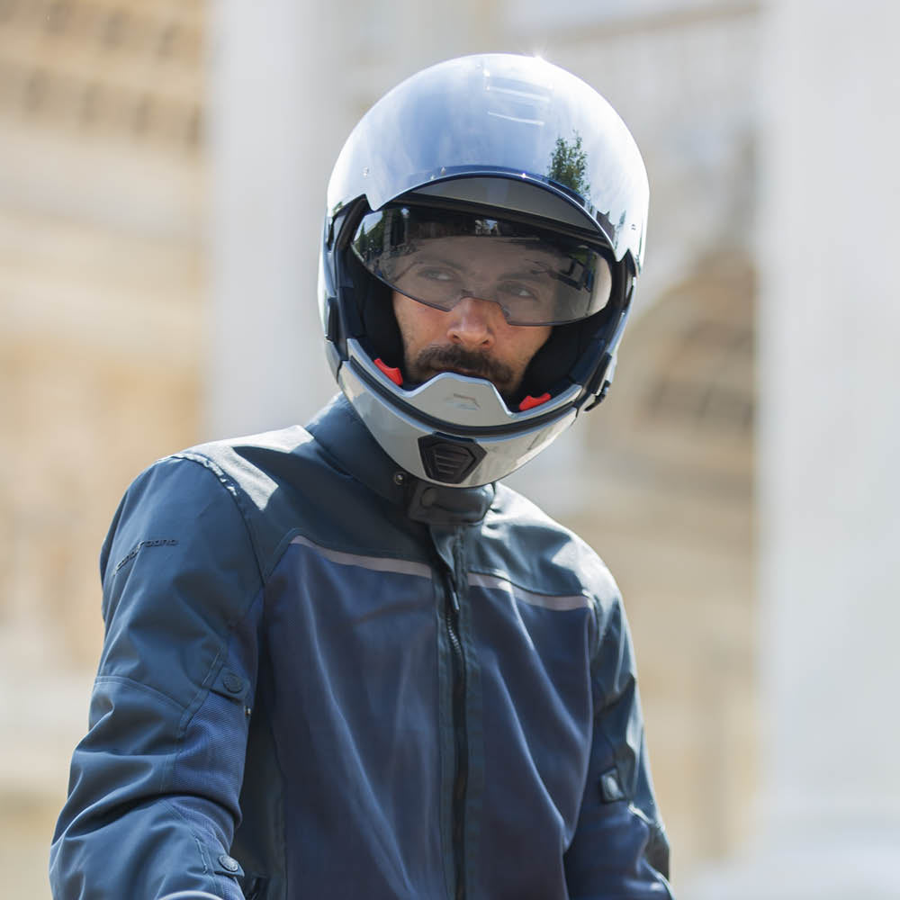 Classic motorcycle cut jacket, CE motorcycle certified - Class A, made from lightweight high-tenacity mesh with high-tenacity Polyester Oxford inserts. The removable COMFORT PROTECTION SYSTEM protectors on the shoulders and elbows are so light that you don’t feel or see them. Perfectly balanced between safety and style.