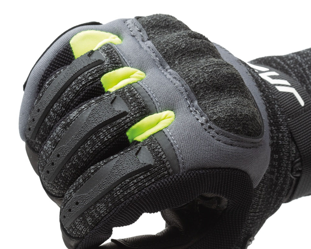 They have a leather palm, so great grip on the handlebars, never lost control.