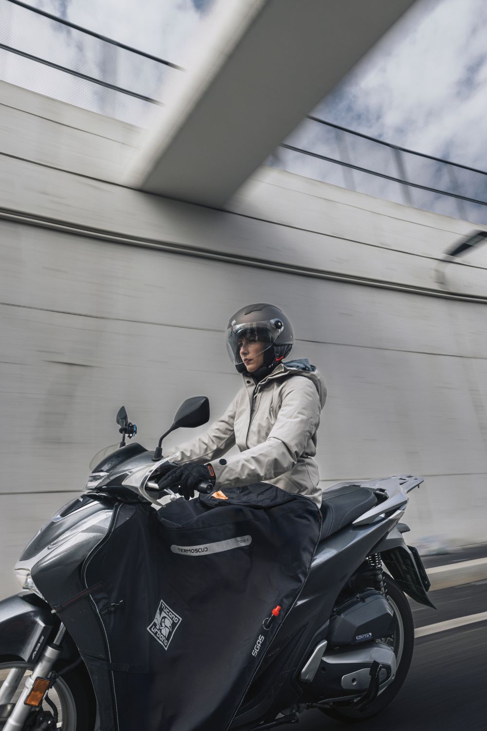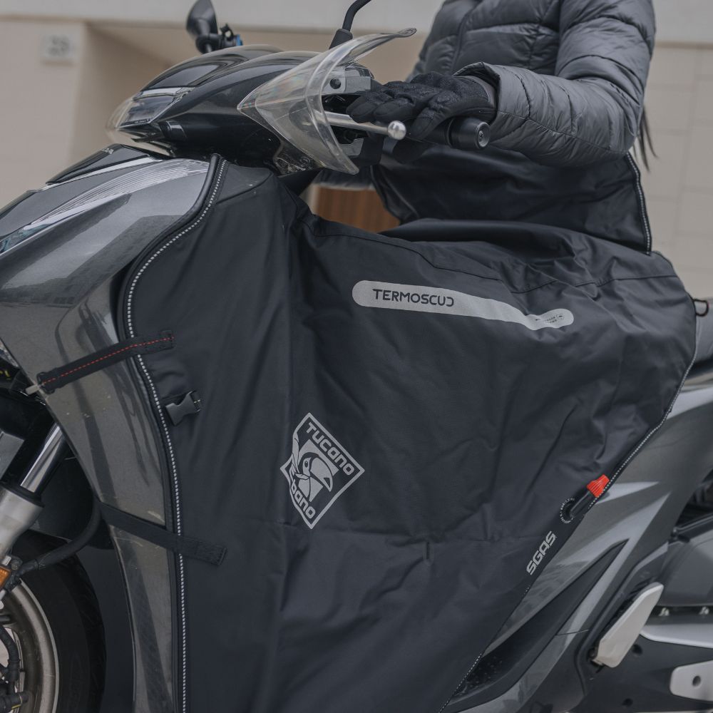 The only original leg cover equipped with the patented S.G.A.S. anti-flap system, allowing you to use your scooter even in winter.