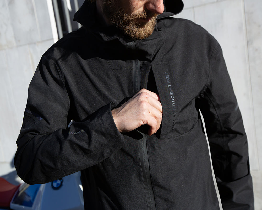 Chaqueta laminada, impermeable y cortaviento – EPI CE categoría 1, con capucha ajustable con visera. La combinación perfecta entre tecnicidad y estilo la hace ideal tanto sobre como fuera de la moto.