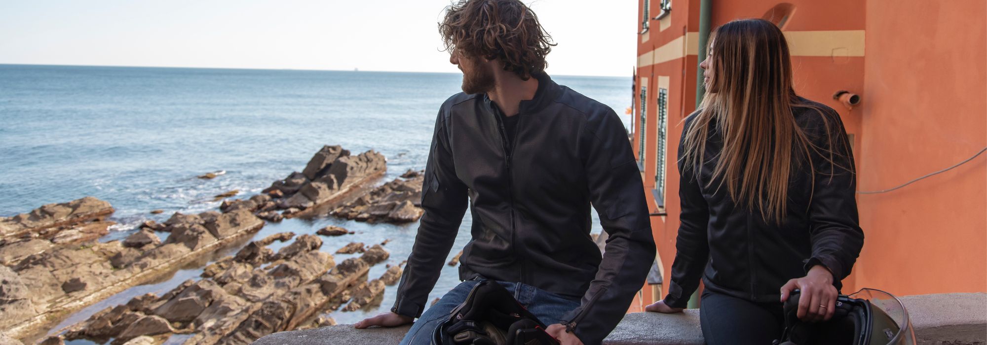 Chaqueta de estilo motociclista clásico, certificada moto CE - Clase A, fabricada en malla con inserciones de poliéster Oxford de alta tenacidad. Las protecciones removibles COMFORT PROTECTION SYSTEM en los hombros y codos son tan ligeras que no se sienten ni se ven. Un equilibrio perfecto entre seguridad y estilo.