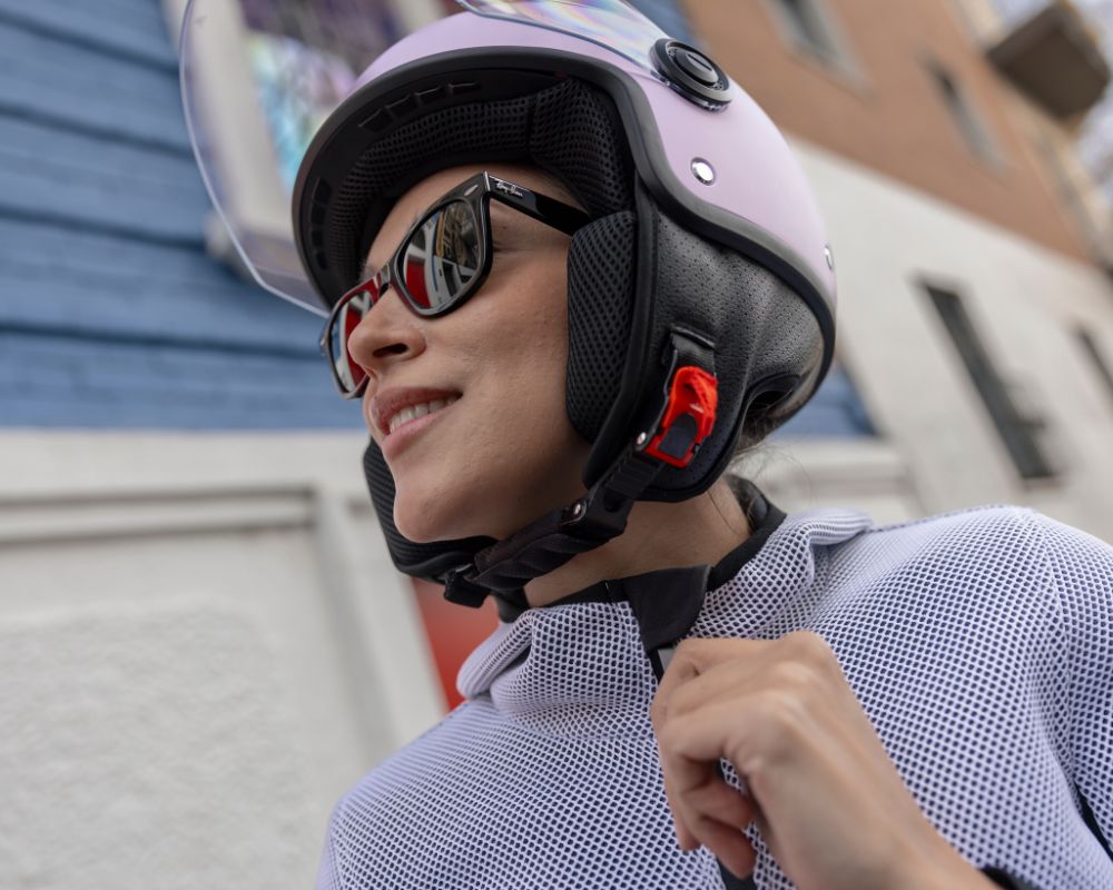 Casque demi-jet en polycarbonate, homologué ECE 22.06, avec double calotte. Il se distingue par son design small fit, son confort et l'originalité des couleurs.