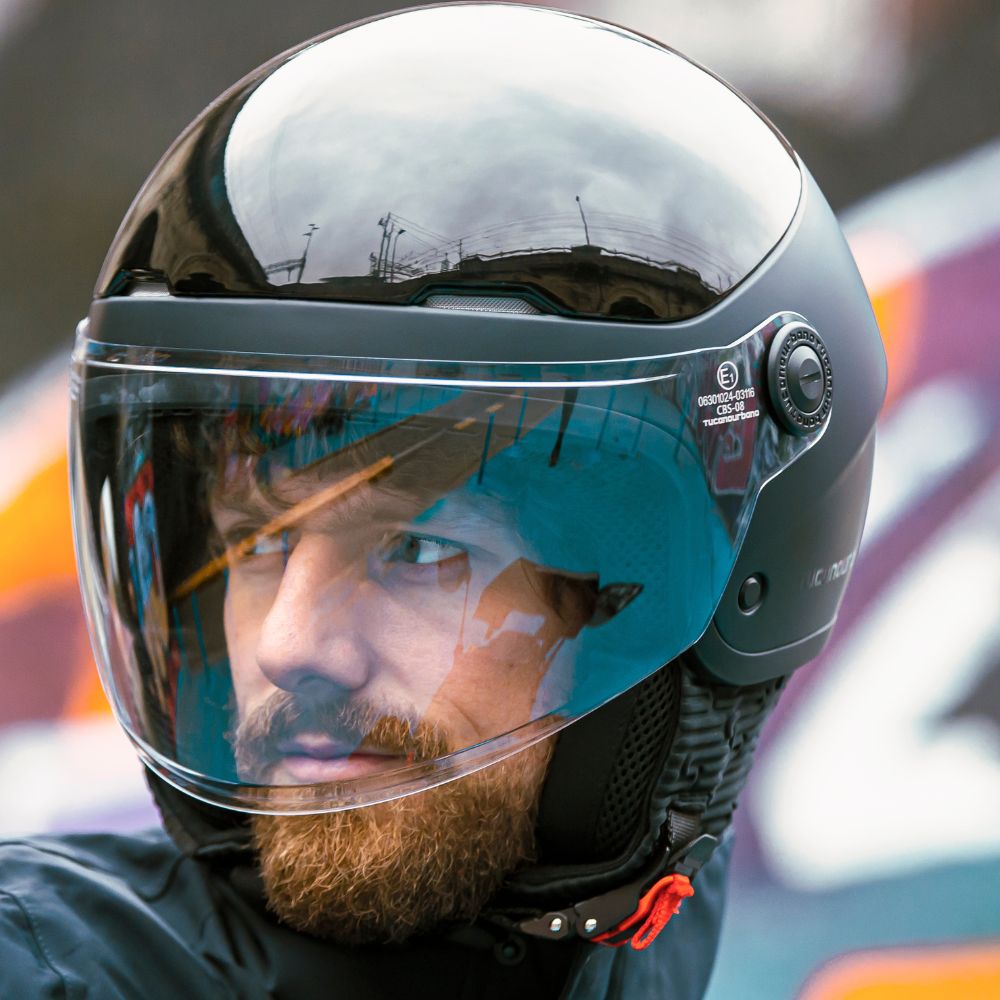 Casque demi-jet en polycarbonate, avec ventilation Dynamic Flow, homologué ECE 22.06. C’est notre modèle au design le plus pop, pensé pour les jeunes scootéristes ou ceux qui souhaitent aller au-delà de la tradition.