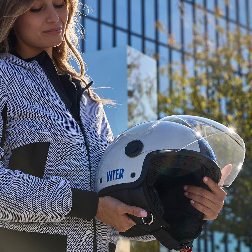 Casque moto demi-jet en polycarbonate, à double calotte, homologué ECE 22.06, avec graphismes personnalisés Inter.