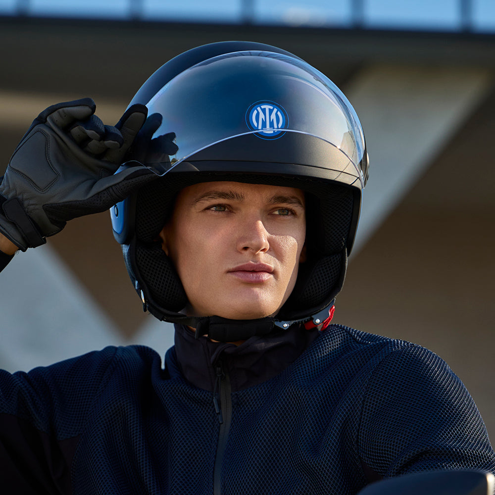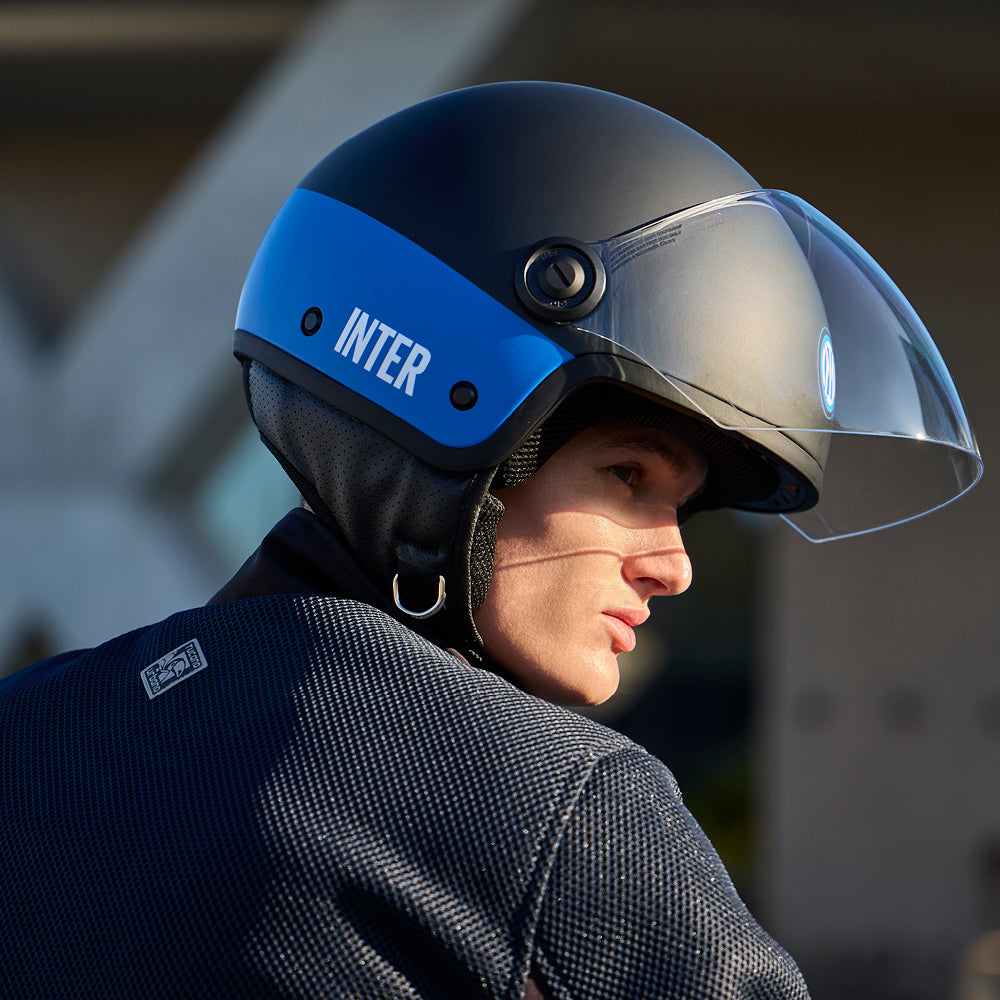 Casque moto demi-jet en polycarbonate, homologué ECE 22.06, avec graphismes personnalisés Inter.
