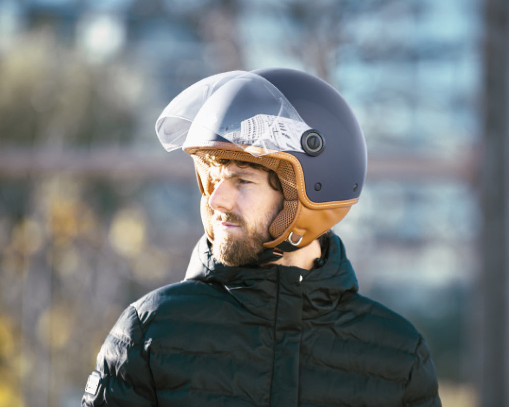 Casco moto demi-jet in policarbonato, a doppia calotta, omologato ECE 22.06.