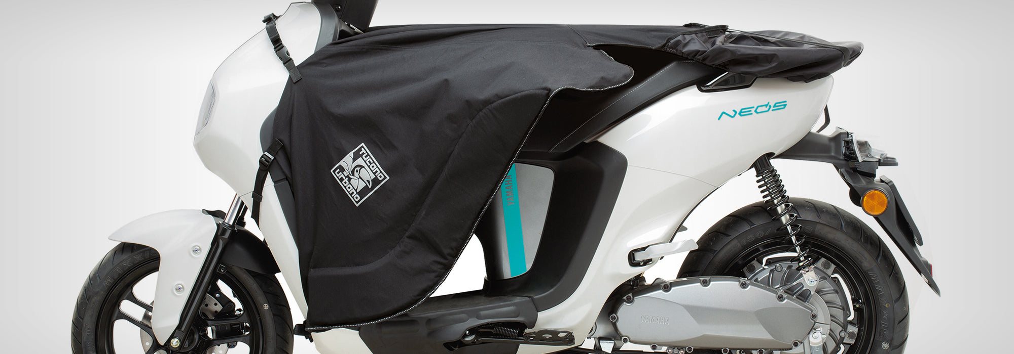 Coprigambe generico per scooter con pedana piatta, non dotato del sistema gonfiabile antisventolio S.G.A.S., consigliato per scooter elettrici o per uso urbano a circa 50 km/h.