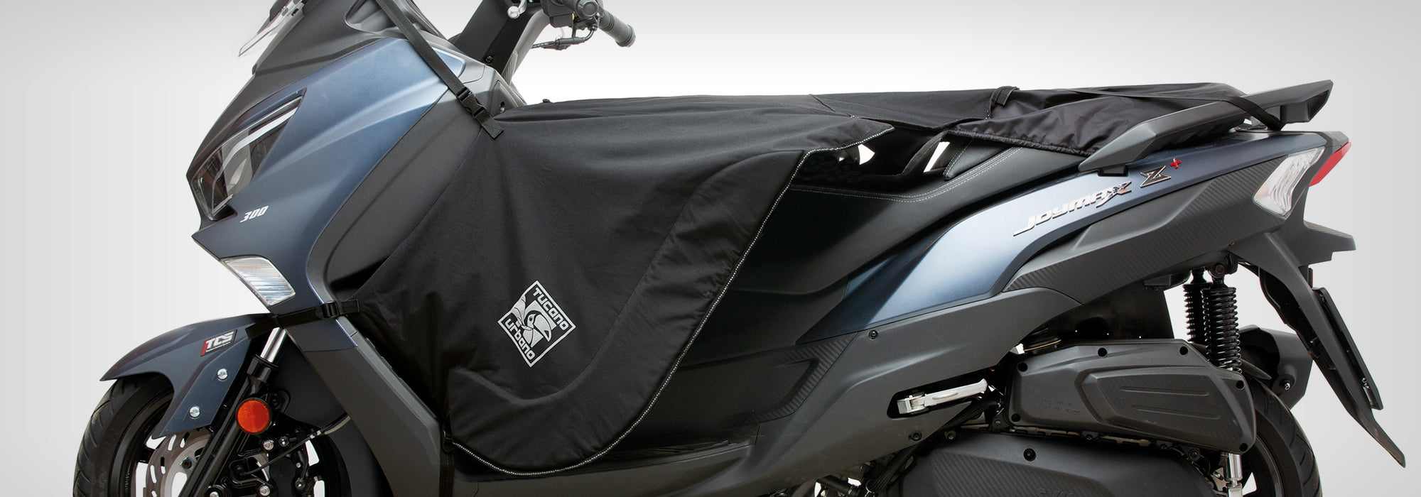 Coprigambe generico per scooter senza pedana piatta, non dotato del sistema gonfiabile antisventolio S.G.A.S., consigliato per scooter elettrici o per uso urbano a circa 50 km/h.
