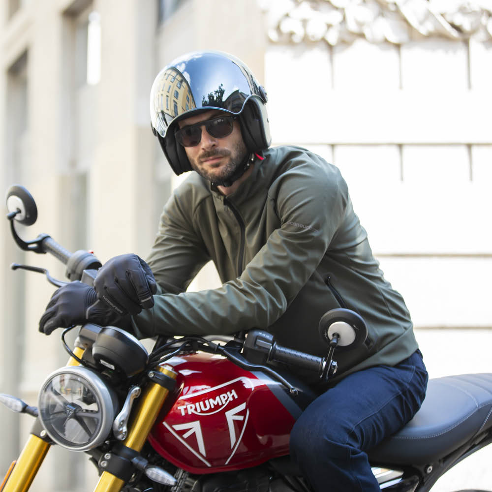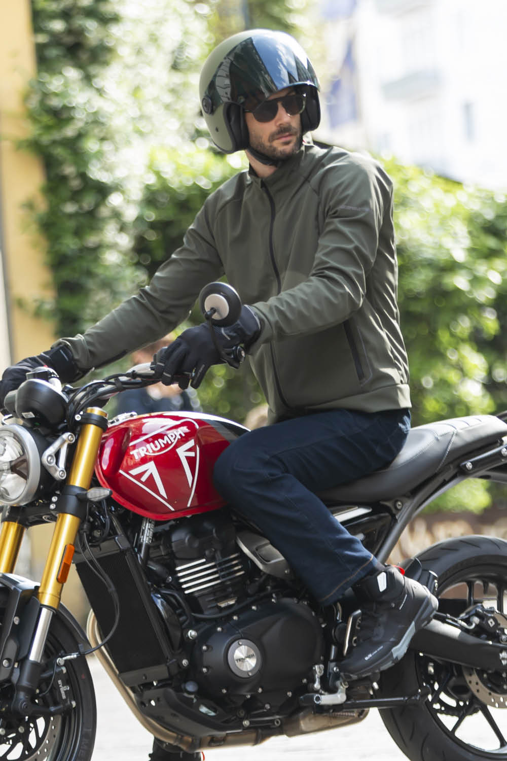 Giacca da moto antivento, certificata CE - Classe A, realizzata in tessuto Windscud accoppiato a 2 strati. Le protezioni removibili Easyflex CE su spalle e gomiti sono così leggere e ventilate che non si sentono e non si vedono. In perfetto equilibrio tra sicurezza e stile.