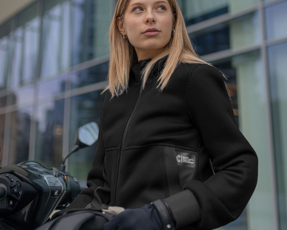 Giacca donna di taglio bomber, certificata moto CE - Classe AA, realizzata in rete 3D, con inserti in softshell leggero. Le protezioni removibili Easyflex CE su spalle e gomiti sono così leggere e ventilate che non si sentono e non si vedono. In perfetto equilibrio tra sicurezza e stile.