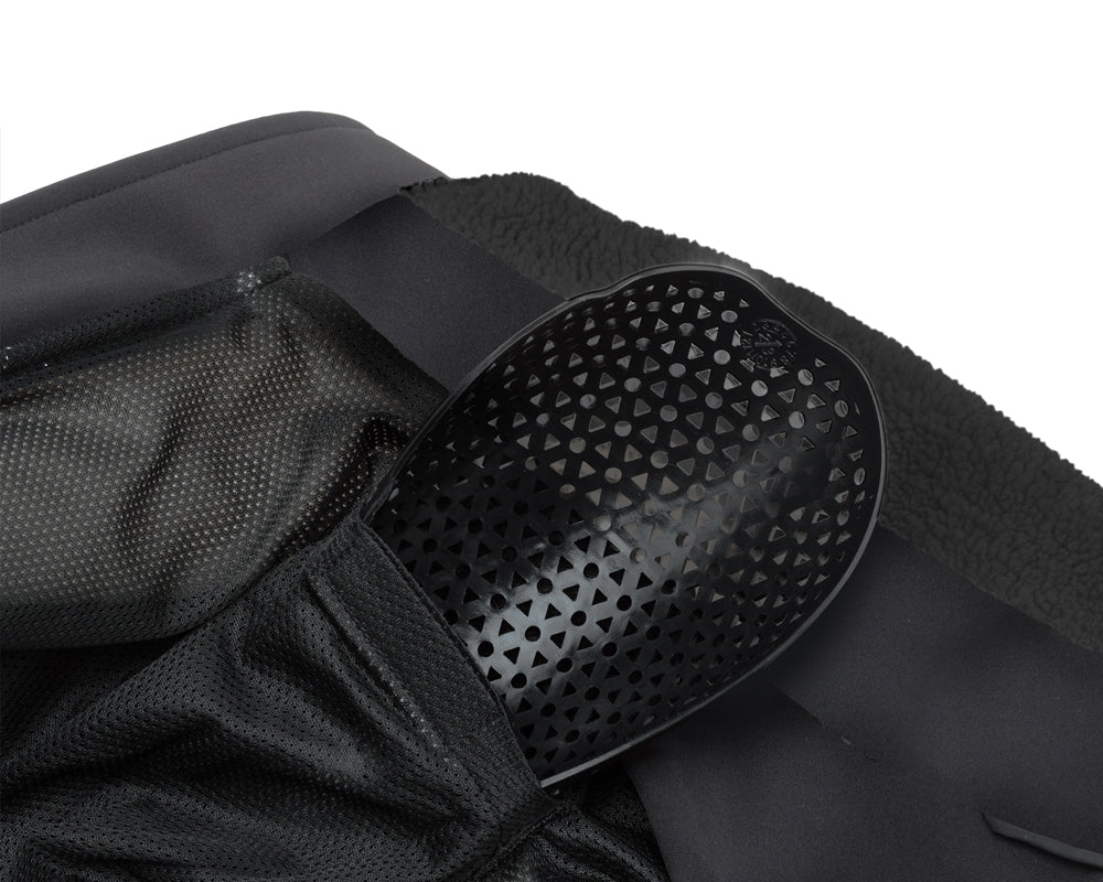 Le protezioni removibili ESYFLEX su spalle e gomiti sono così leggere e ventilate che non si sentono e non si vedono. Stesso risultato se si aggiunge la protezione schiena.