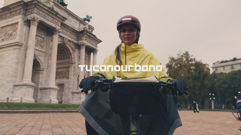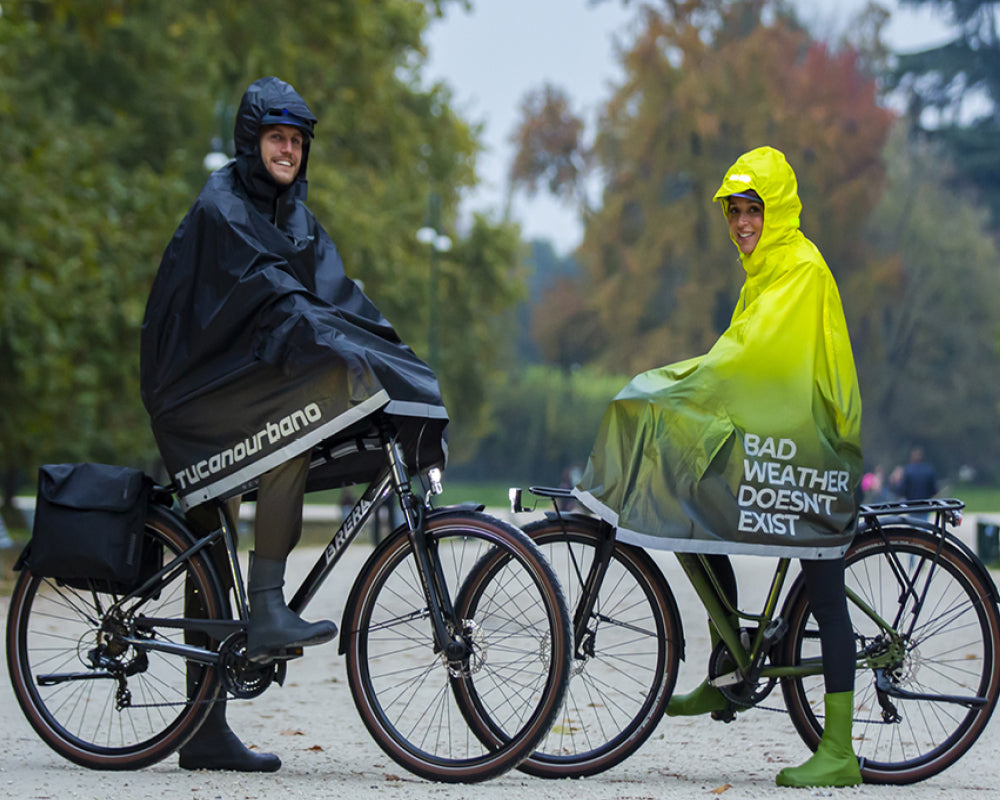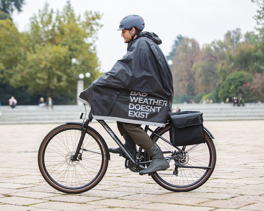 Mantella antipioggia da bicicletta, ergonomica e super compattabile.